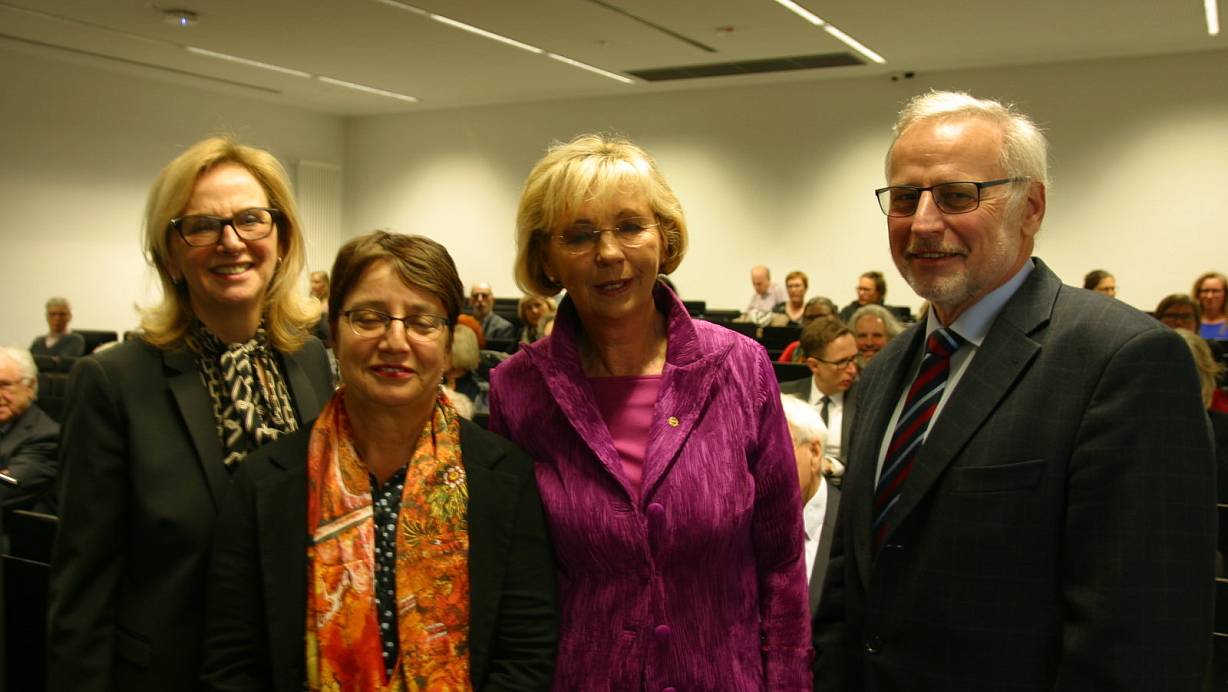 Ruth Hagengruber, Präsidentin Birgitt Riegraf, die Ehrendoktorin Maria von Welser und Dekan Volker Peckhaus. | © Marc Schröder
