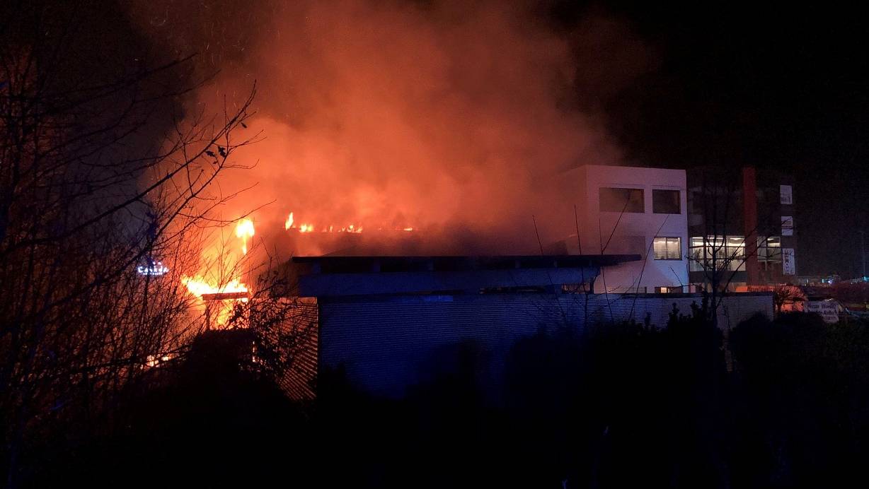 Großeinsatz am Silvesterabend: Lagerhalle in Sennelager in Flammen