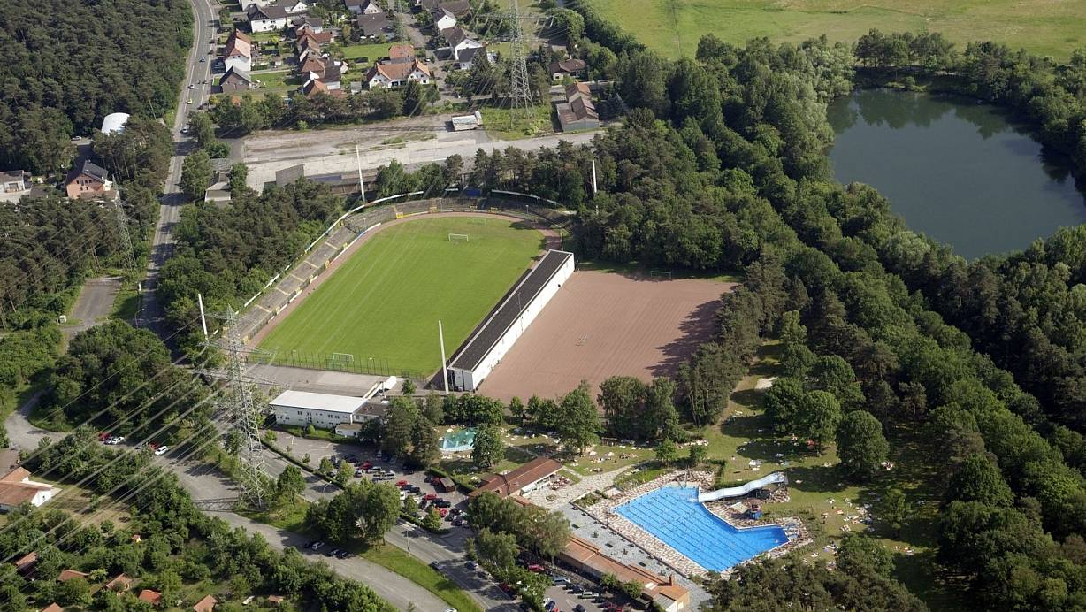 Das Hermann-Löns-Stadion mit seinem Sportgebäude (im Vordergrund links). | © Gerd Vieler