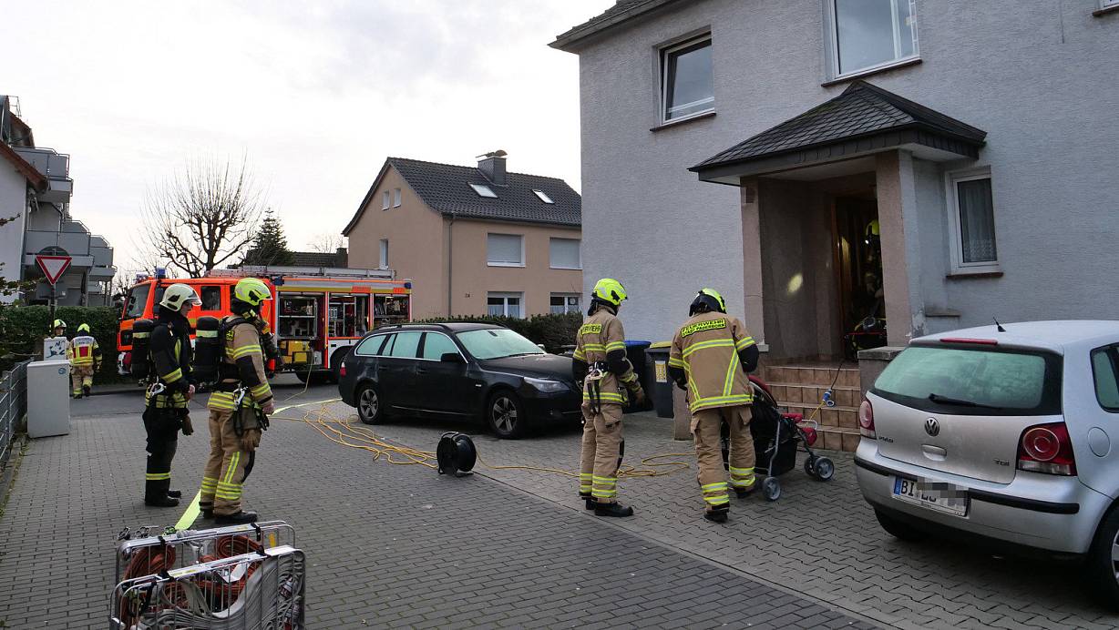 Einsatzkräfte der Paderborner Feuerwehr belüften die Küche der Erdgeschosswohnung in der Klöcknerstraße. | © Ralph Meyer
