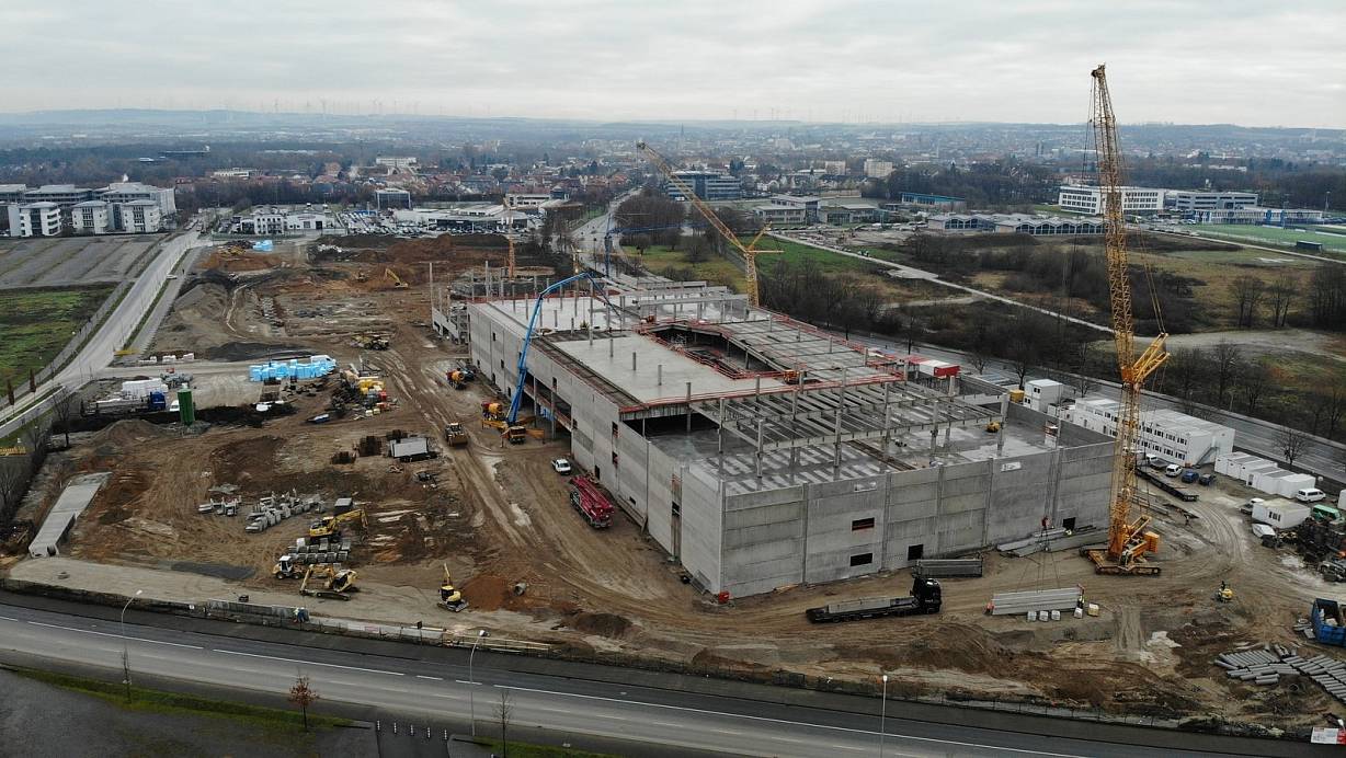 Auf der Baustelle des Höffner-Möbelhaus, ehemals Finke, an der Elsener Straße gehen die Arbeiten zügig voran. | © Jens Reddeker