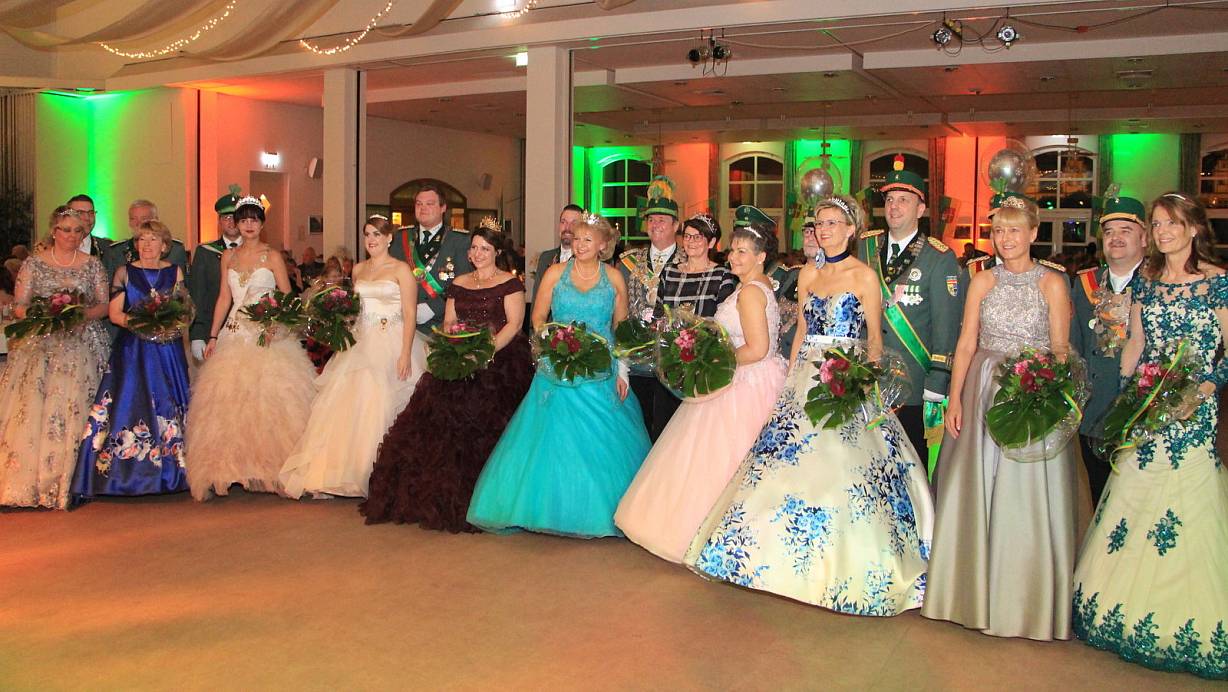 Der Eröffnungstanz des Königspaares Olaf und Anette Pippert begleitet von den Prinzenpaaren und dem Zeremonienmeisterpaar bildeten den Auftakt des Balles. Für die musikalische Begleitung sorgte die Partyband „Galant" aus Bochum und im Anschluss DJ Kai Knipping von Padersound.