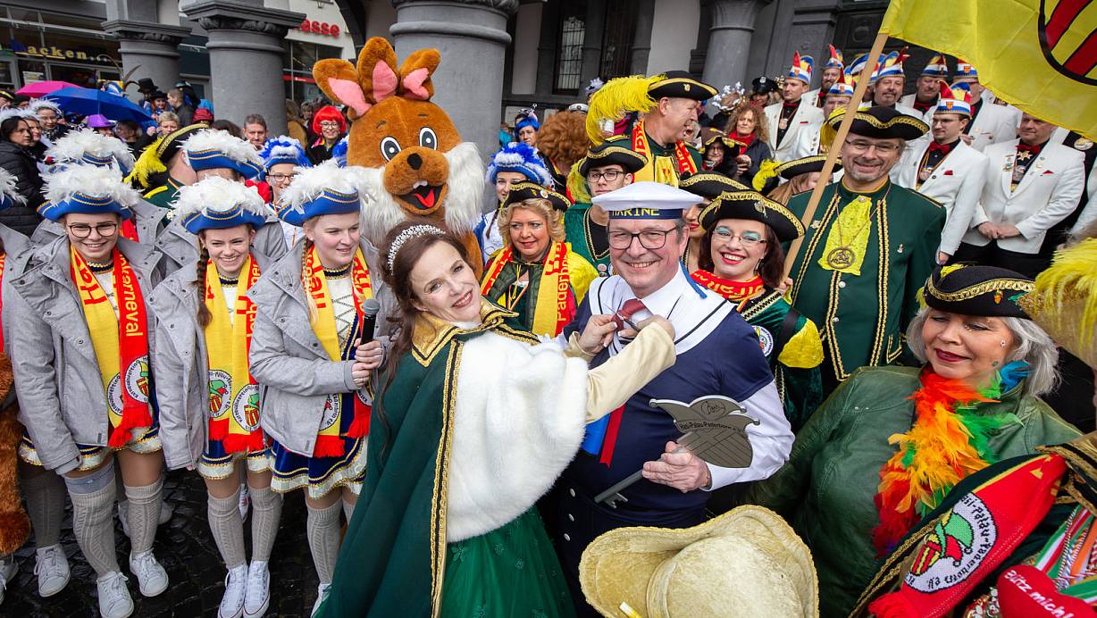Mümmelprinzessin Monika Gertkämper und Bürgermeister Michael Dreier inmitten der Karnevalisten | © Niklas Tüns