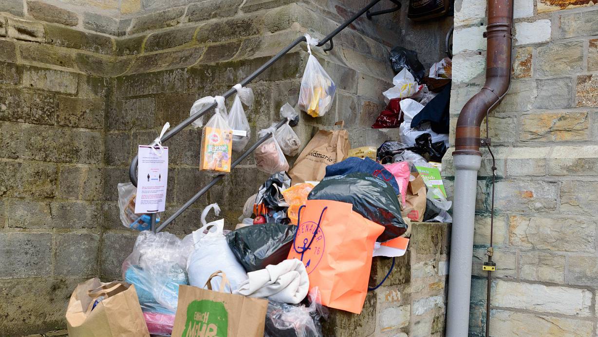 Obdachlose oder andere bedürftige Menschen können sich am Dom mit Lebensmitteln oder Kleidung versorgen, solange die Tafeln und ähnliche Angebote wegen Corona geschlossen sind.