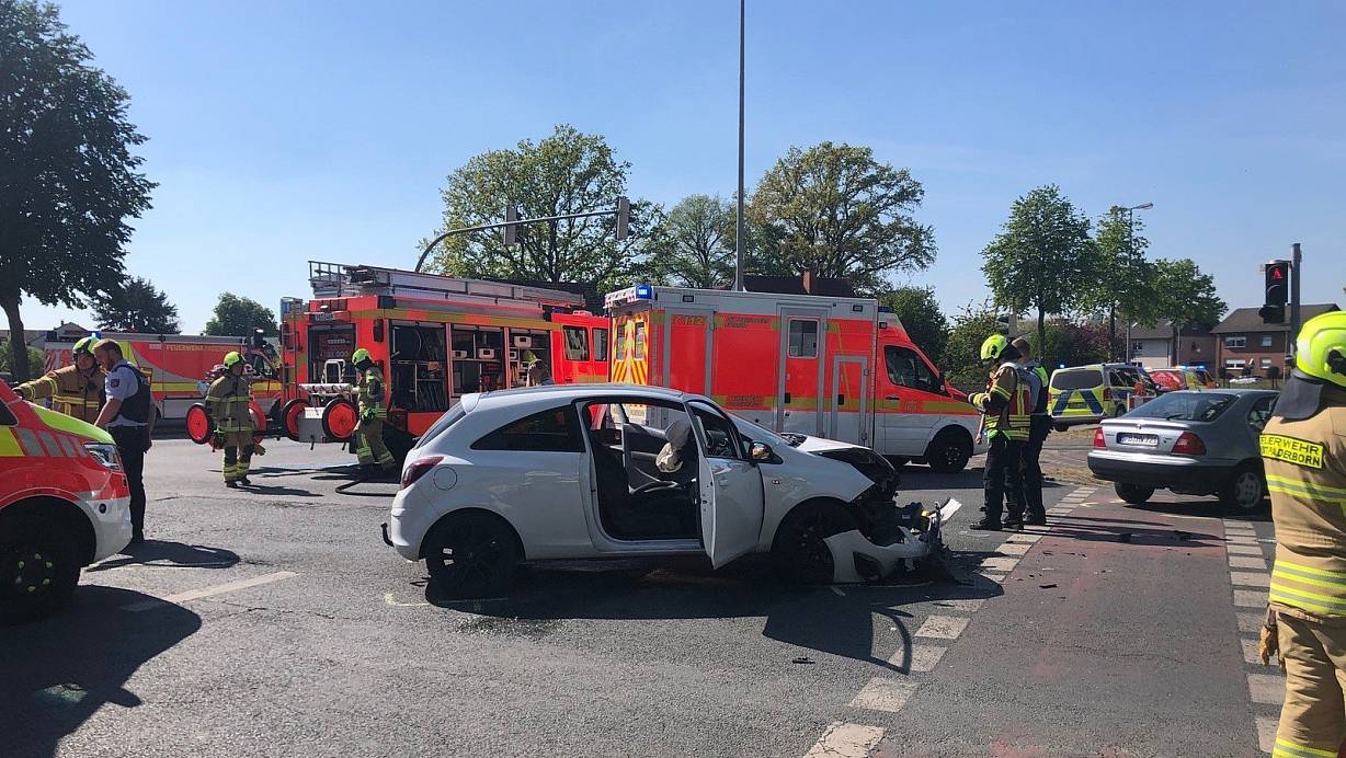 Paderborn. Bei einem Autounfall auf dem Dr.-Rörig-Damm sind am Sonntagnachmittag gegen 15.30 Uhr vier Menschen verletzt worden. Wie die Feuerwehr berichtet, stießen die Wagen im Kreuzungsbereich Schwabenweg/Dr.-Rörig-Damm seitlich zusammen.