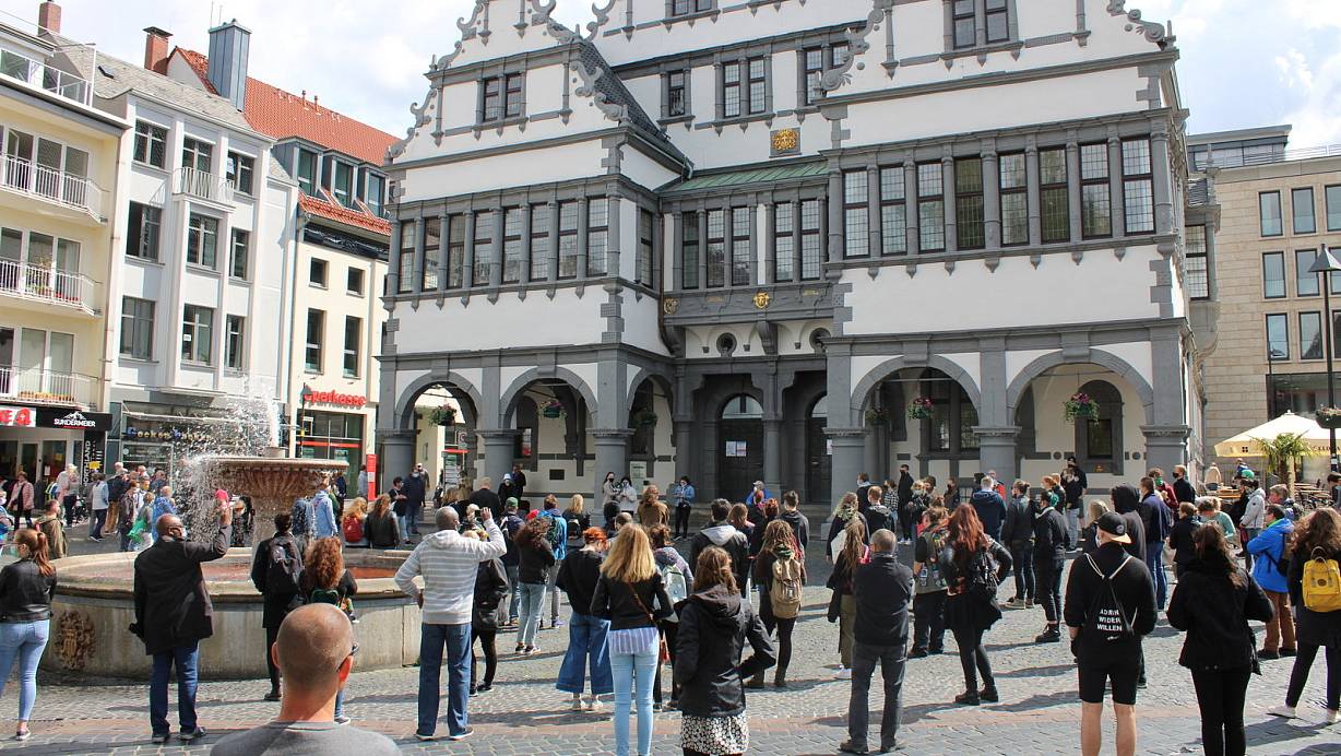 Während der fast neun-minütigen Gedenkzeit halten alle Teilnehmer inne und schweigen. | © Moritz Jülich