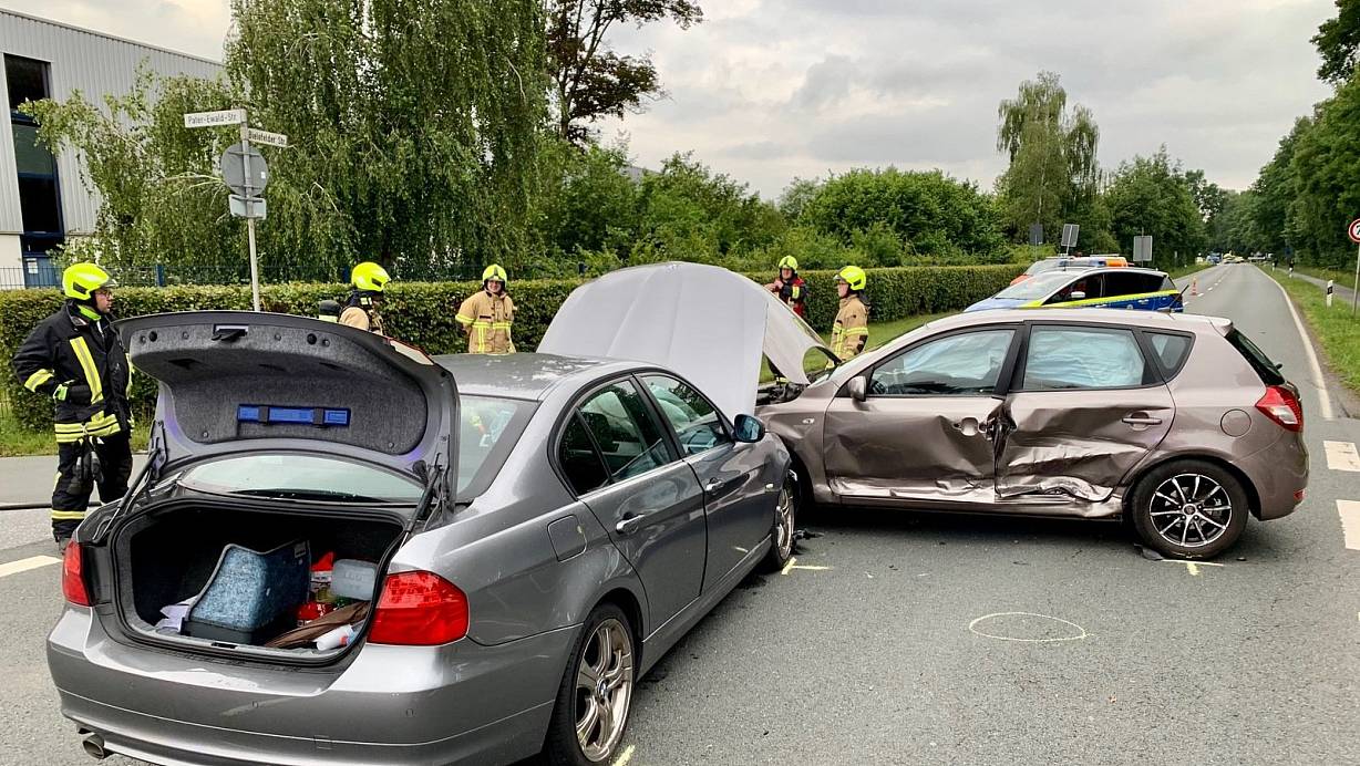 Im Kreuzungsbereich der Bielefelder Straße und Pater-Ewald-Straße sind mehrere Autos zusammengestoßen. | © Ralph Meyer