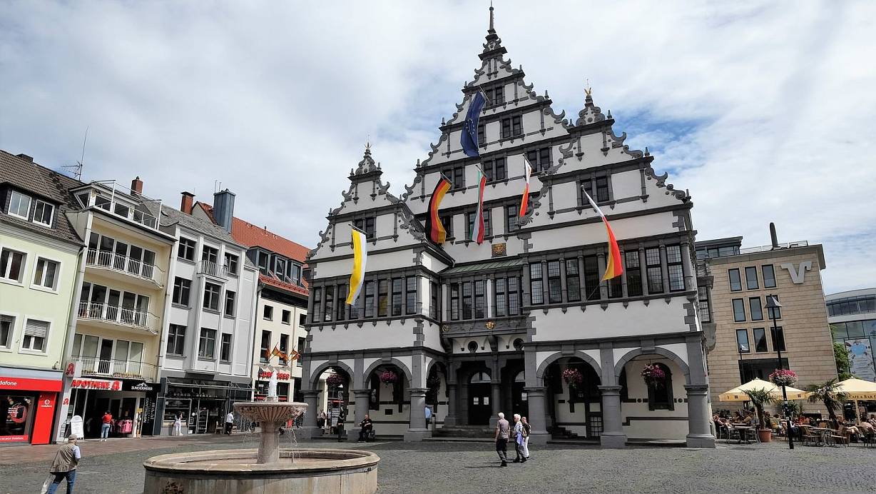 Auch zu Libori 2020 ist das Rathaus in Paderborn mit Fahnen geschmückt. | © Hans-Hermann Igges