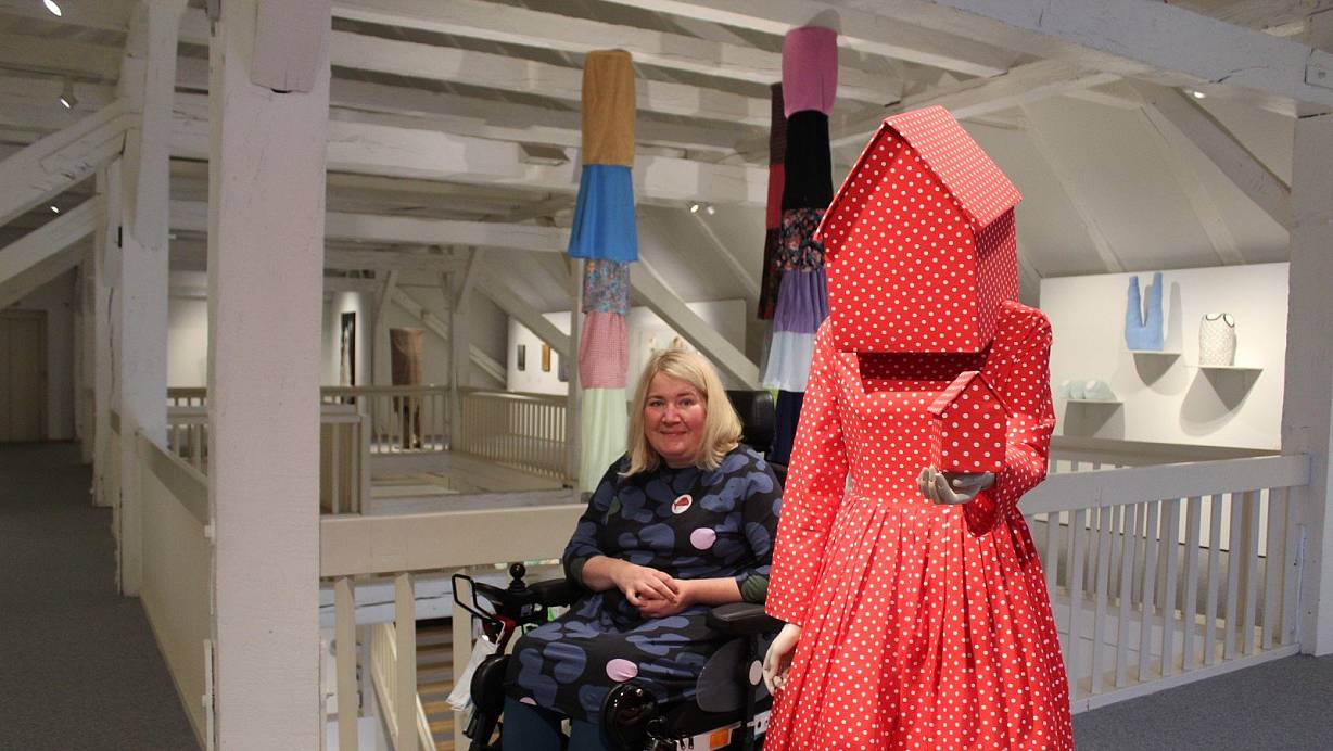 "rot mit weißen Punkten": Die Skulptur der niederländischen Künstlerin Guda Koster ist zum Publikumsmagneten geworden. Fast jeder Museumsbesucher möchte ein Foto von sich und der "Frau mit dem Haus auf dem Kopf", sagt die Museumsleiterin Andrea Brockmann. | © Anastasia von Fugler