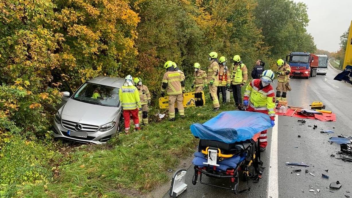 Der Pkw-Fahrer wird verletzt in ein Krankenhaus gebracht.