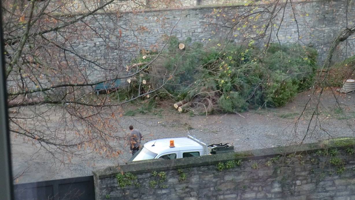 Am Klarissenkloster wurden Tannen, Fichten und Sträucher entfernt, weil die Wurzeln bis unter die denkmalgeschützte Umfassungsmauer reichten. | © Michael Wolf