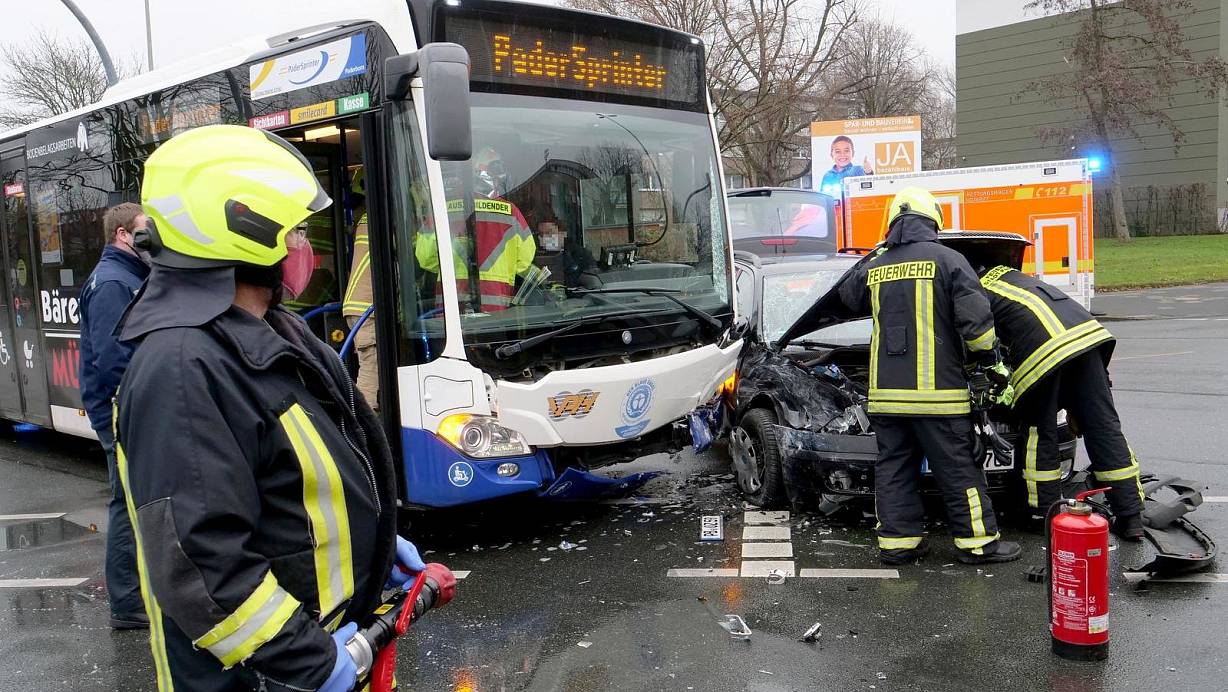 Kombi kollidiert mit abbiegendem Linienbus in Paderborn