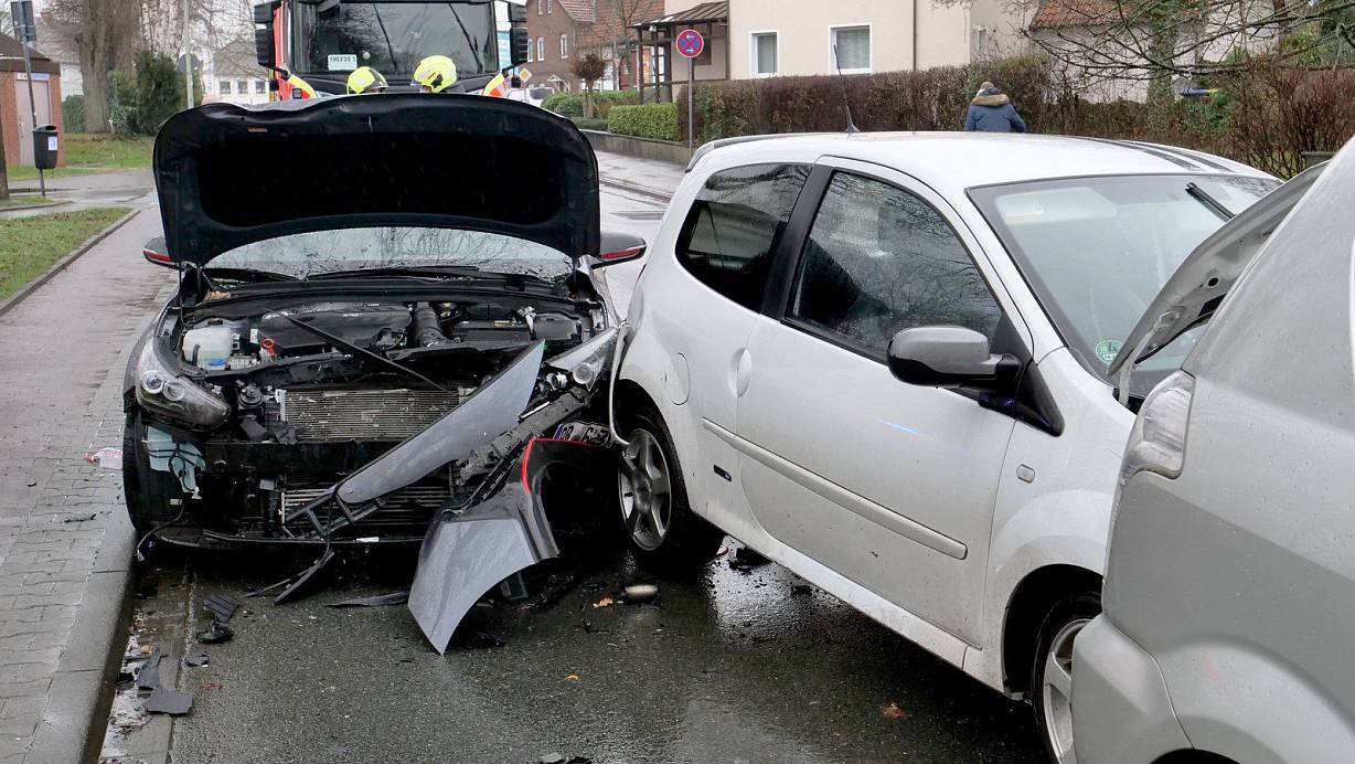 Auf der Sander Straße im Paderborner Stadtteil Elsen kollidieren drei Personenwagen. Dabei werden zwei der fünf Insassen verletzt. | © Ralph Meyer