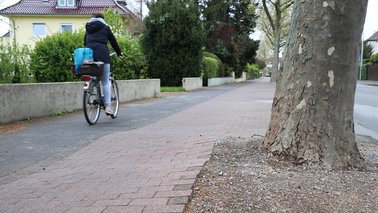 Der Radweg an der Benhauser Straße ist nicht nur sehr holprig, sondern auch zu schmal, wenn Gegenverkehr naht. Ein Fall für die App RADar. | © Holger Kosbab