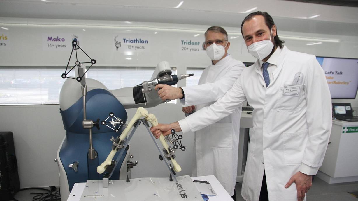 In der Praxis arbeitet der Roboterarm mit einem virtuellen Assistenzsystem, das dem Chirurgen hilft, noch exakter und fehlerfreier zu arbeiten. „Studien belegen, dass etwa 20 Prozent der Patienten mit ihrem neuen Kniegelenkersatz nicht vollständig zufrieden sind und unter Bewegungseinschränkungen oder sogar Schmerzen leiden. Für viele Betroffenen ist daher eine Folge-OP binnen weniger Jahre nötig. Die Ursache liegt oft an nicht perfekt sitzenden Prothesen. Für uns Chirurgen ist es Millimeterarbeit diese optimal einzusetzen und genau hierbei dient der Roboter als ausgezeichneter technischer Helfer", sagte Chefarzt Marco Ezechieli.