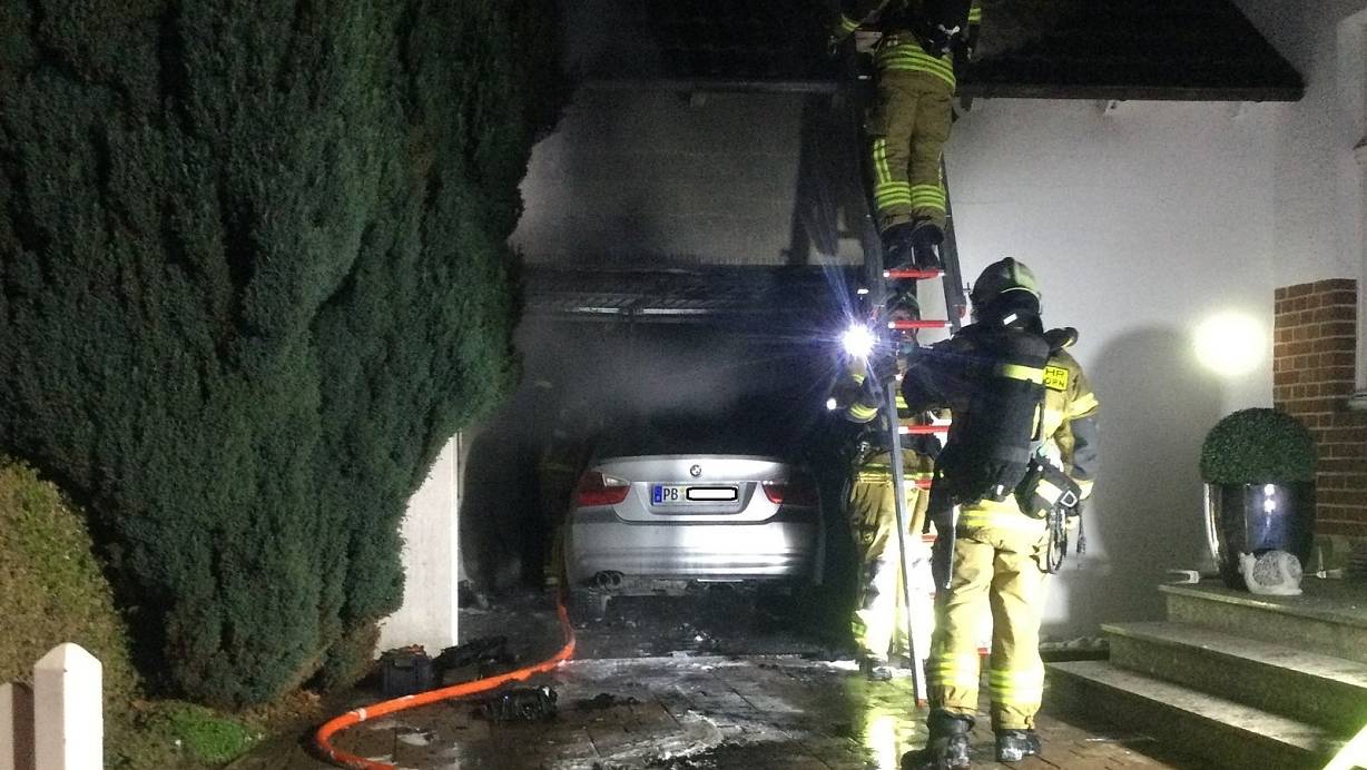 Paderborn-Wewer (nw/ber). Die Feuerwehr Paderborn musste in der Nacht auf Samstag um 3.15 Uhr zu einem Garagenbrand ausrücken. Als die insgesamt 35 Kräfte an der Einsatzstelle im Ortsteil Wewer eintrafen, stand der Pkw in der an ein Wohnhaus angrenzenden Garage komplett in Flammen.