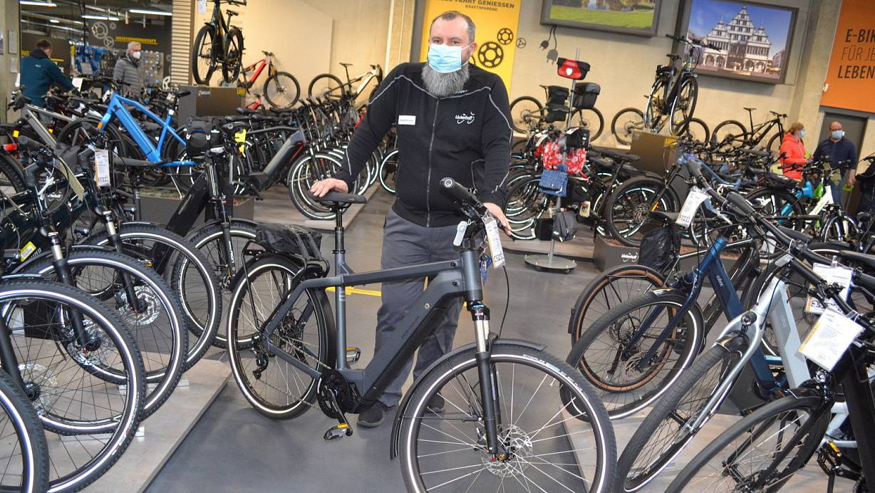 Sascha Weber ist Fillialleiter von Löckenhoff, einem Fahrradgeschaft in Paderborn - er beobachtet, dass vor allem E-Bikes rege nachgefragt werden. | © Peter Heidbrink