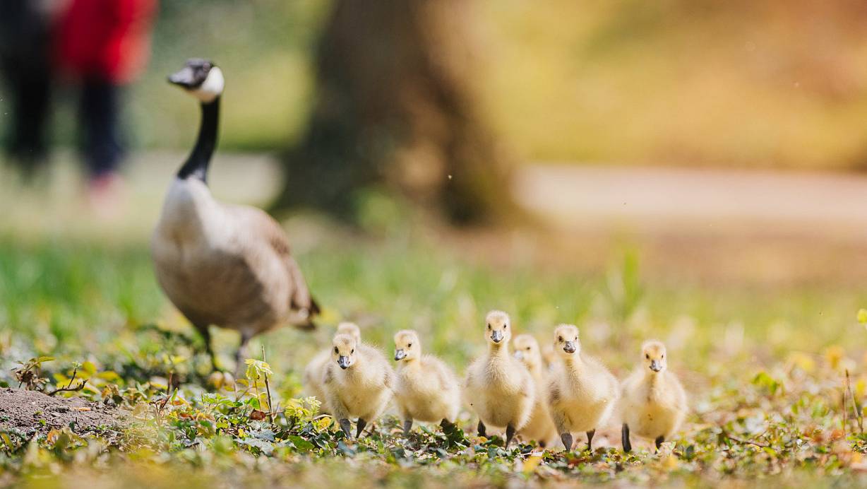 Putzig anzuschauen: Die Gänseküken-Familie während eines Spaziergangs. | © Besim Mazhiqi