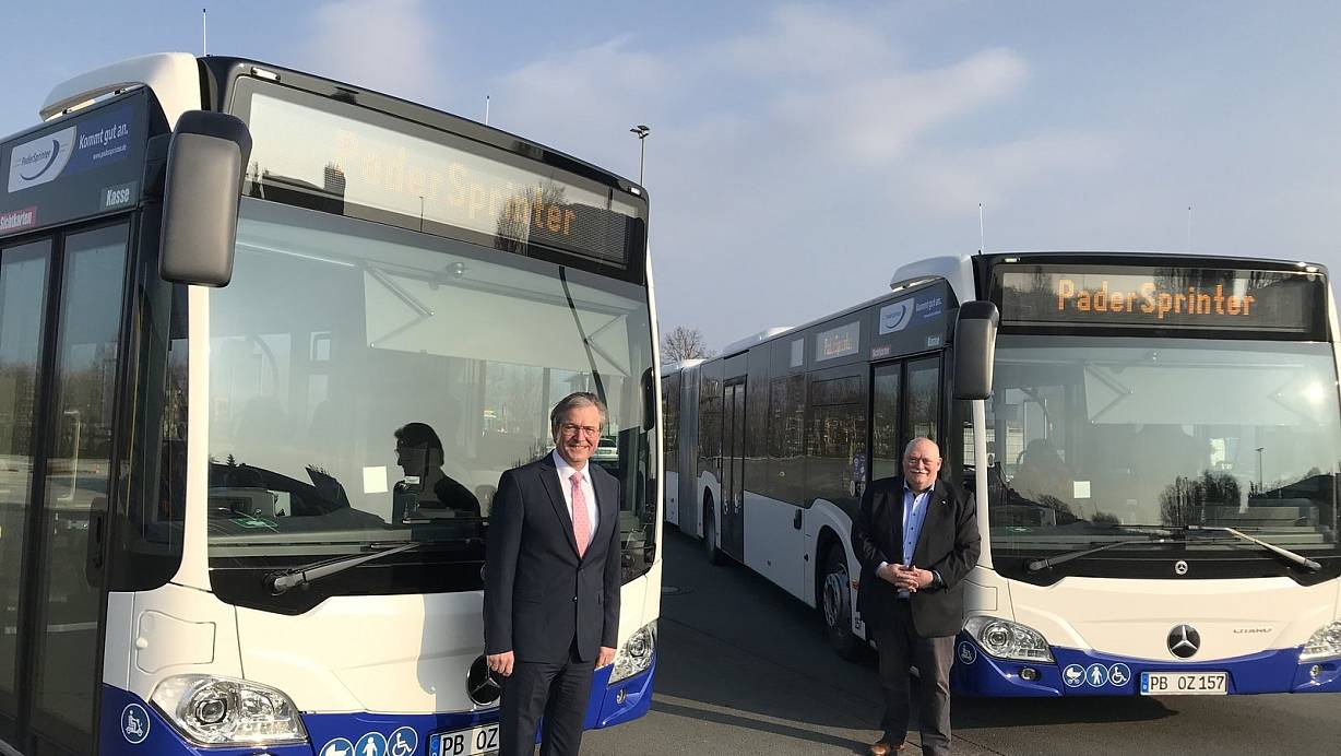 Paderborn. Zehn fabrikneue Linienbusse vom Typ ”Mercedes-Benz Citaro” verstärken jetzt die Flotte des Padersprinters. Das Sicherheitspaket des Nahverkehrsbetriebs wird bei diesen Gelenkbussen von zwei Besonderheiten ergänzt. Erstmalig gibt es ab Werk einen antiviralen Filter und eine Sicherheitsscheibe zwischen Fahrerarbeitsplatz und Fahrgastraum, um vor einer Infektion mit dem Corona-Virus zu schützen.