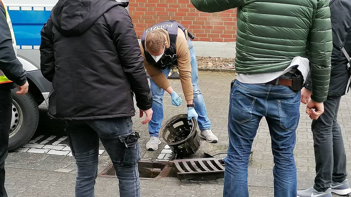 Zivile Beamte führten die Durchsuchung eines Tatverdächtigen coronabedingt auf dem Hof der Paderborner Wache durch. Er versuchte noch auf dem Hof der Polizei, vor den Augen der Beamten, das mitgeführte Marihuana in einem Gulli verschwinden zu lassen.