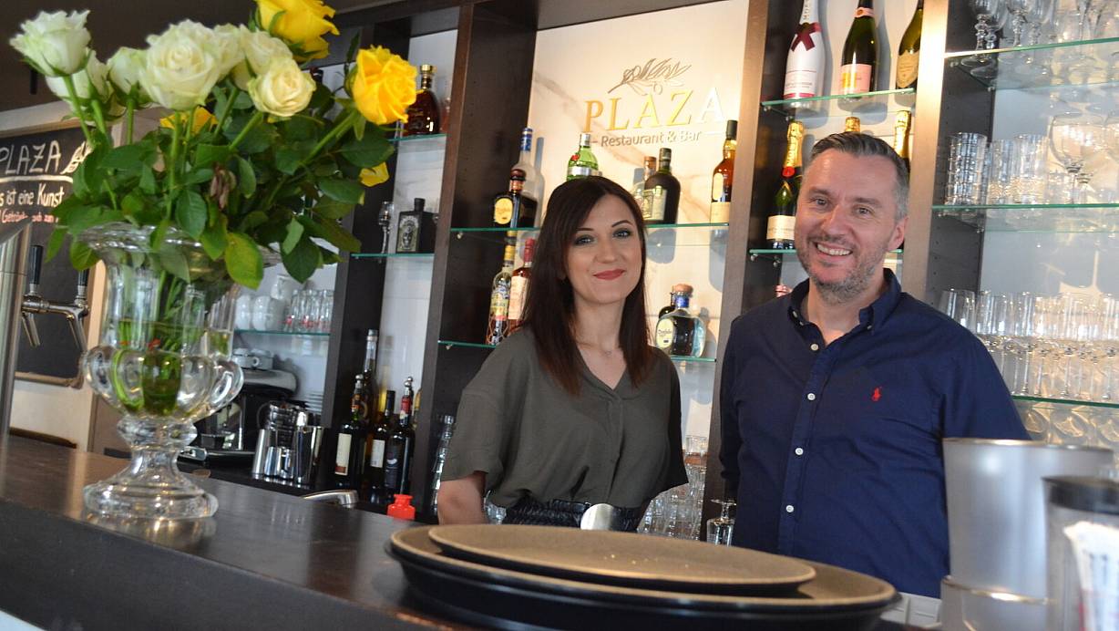 Freuen sich über den gelungenen Start nach dem Lockdown: Ina Sulce ("die rechte Hand" im Plaza) und Nelton Mebelli (Inhaber und Leiter) sind noch relativ neu in der Gastro-Landschaft Paderborns. | © Peter Heidbrink