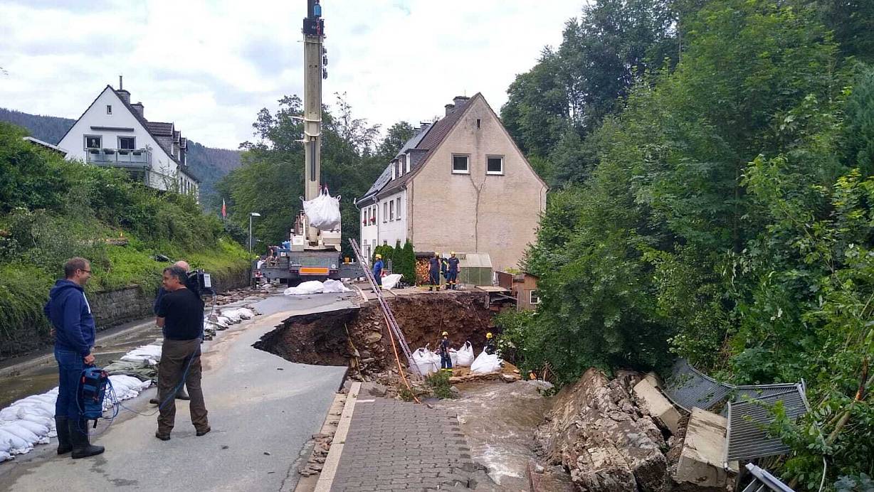 Kräfte des Paderborner Ortsverbandes packen vielerorts mit an. "Ein solches Schadensausmaß habe ich in 30 Jahren beim THW nicht gesehen", sagt Christoph Wiegand, einer der Helfer.
