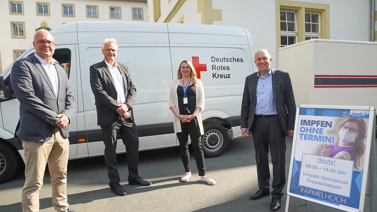 Landrat Christoph Rüther setzt darauf, dass möglichst viele Menschen die Chance nutzen, sich im Container impfen zu lassen: „Die Impfkampagne benötigt jetzt weiter Rückenwind, damit die Impfquote im Kreis weiter steigt. Wir unterstützen das, indem wir die Impfangebote näher zu den Menschen bringen."