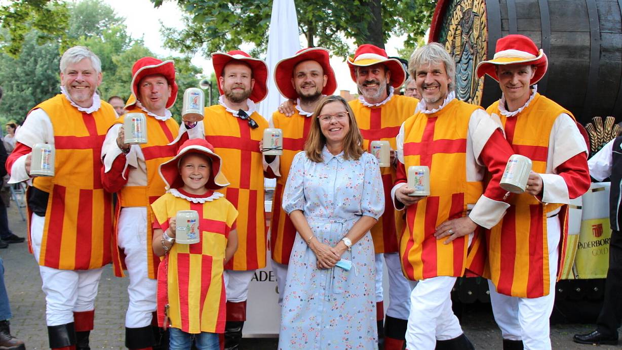 Paderborn (vb). Am letzten Abend des Paderborner Bierbrunnens wurde für den guten Zweck gesammelt. Insgesamt kamen dabei 1.003 Euro für den gemeinnützigen Verein "Odissa Charles" zusammen. Auch die Jubelhennesse machten mit und spendeten ihre Aufwandsentschädigung, die sie von der Stadt für ihren Einsatz in der Liboriwoche erhalten haben.