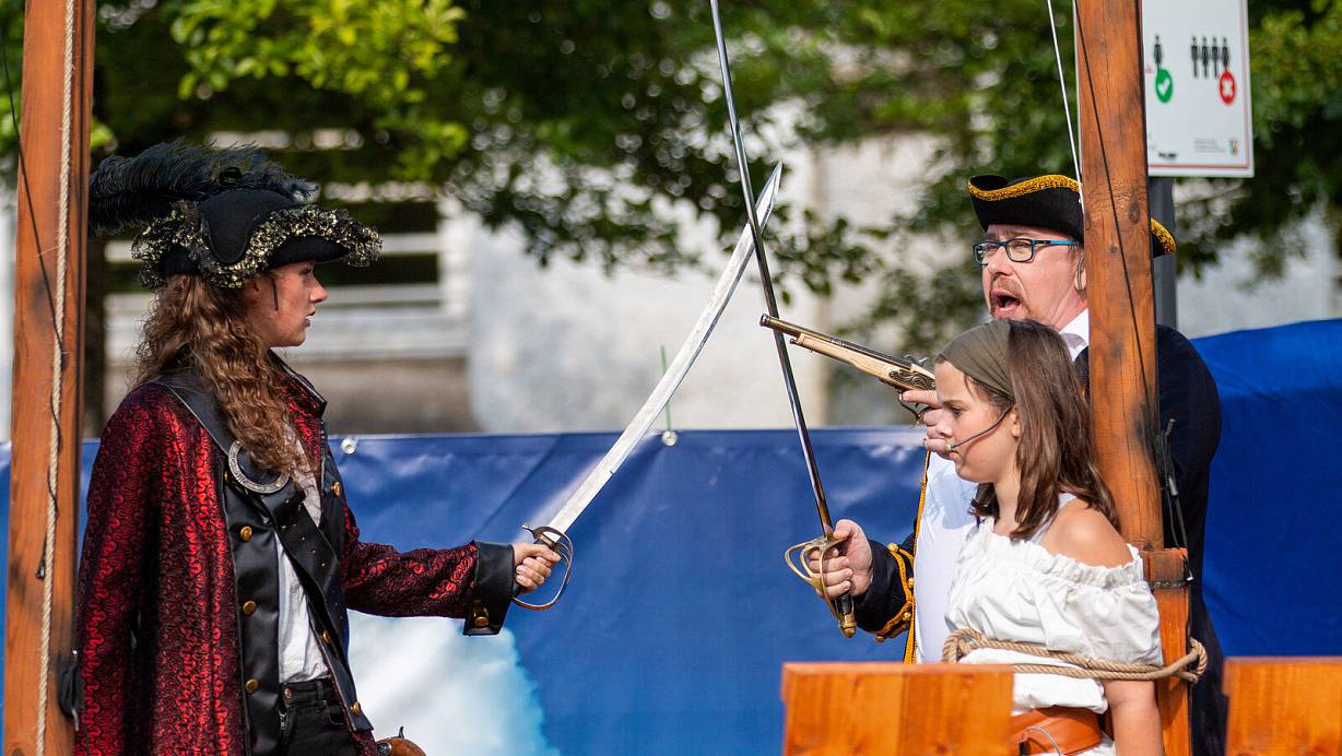 Die ersten fünf der insgesamt 14 Aufführungstermine werden zwischen dem Brunnentheater und der Schlosshalle gespielt. Anschließend zieht die Kulisse hinter die Schlosshalle auf den Schotterplatz, der für die restlichen Termine bespielt wird. In dem Stück durchquert die mutige Piratentochter Seraphine mit ihrer Mutter die sieben Weltmeere.