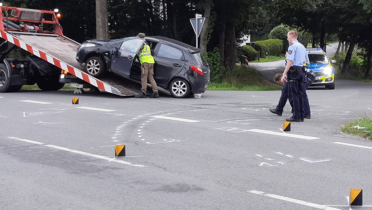 Der Mazda kollidiert mit einem Smart und überschlägt sich infolge dessen. | © Marc Schröder