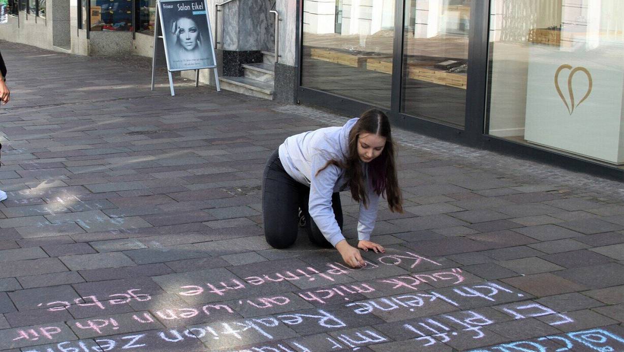 Mit den Sprüchen auf der Straße will Carlotta auf das Thema aufmerksam machen. | © Wiebke Wellnitz