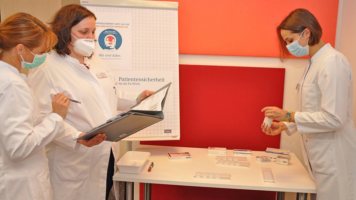 Im Brüderkrankenhaus organisieren sie Apothekerinnen Blitzfortbildungen auf den Stationen, in denen in kniffeligen Fragestellungen mögliche Fehlerquellen aufgedeckt werden müssten. Eigens dafür haben sie einen mobilen Medikamentenstellplatz präpariert, an dem absichtlich Sicherheitslücken eingebaut wurden, die die Mitarbeitenden aufdecken sollen.