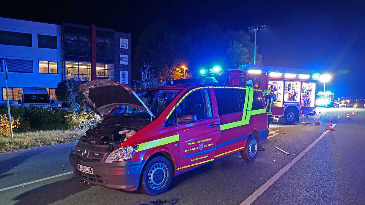Eine SUV-Fahrerin übersieht den Transporter, der von einem Ausbildungsabend zurückkam. Sie und drei Feuerwehrleute müssen ins Krankenhaus.