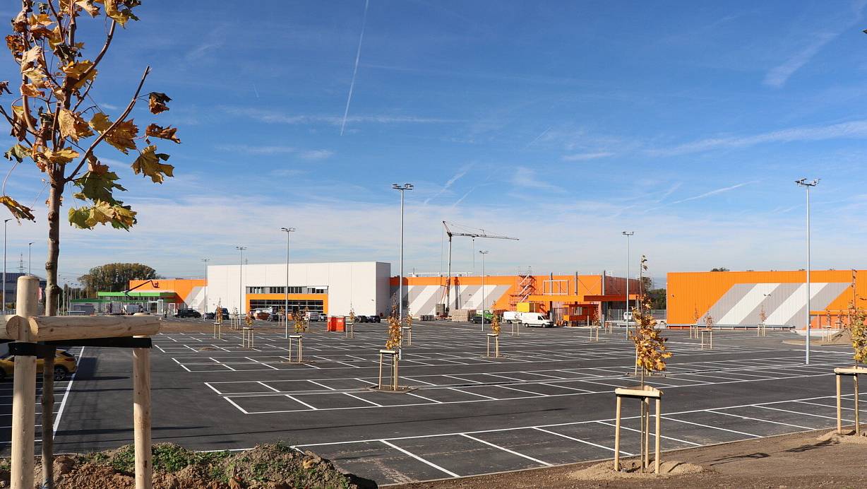 Auf dem Parkplatz des neuen Hornbach-Baumarkts in Paderborn wurden bereits Bäume gepflanzt. | © Mareike Gröneweg