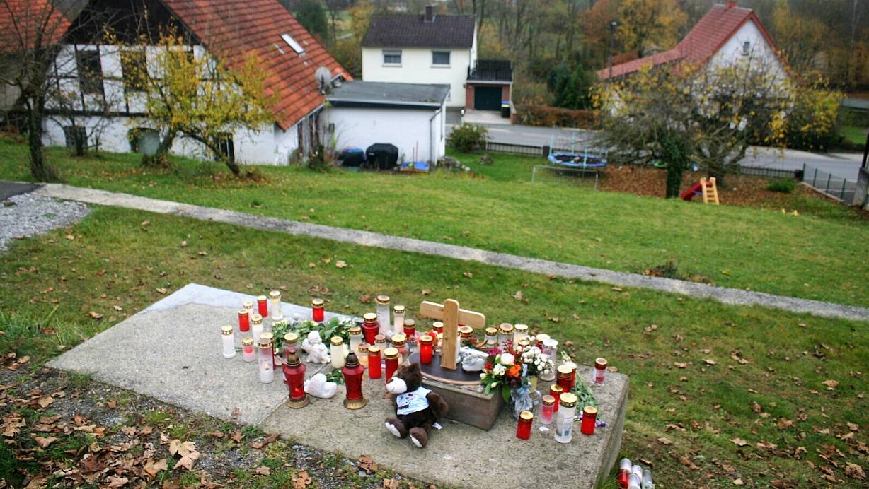An der Unfallstelle in Büren-Brenken, wo der Siebenjährige tödlich verunglückte, haben Menschen Kerzen aufgestellt und Blumen und Kuscheltiere abgelegt. | © Johannes Büttner