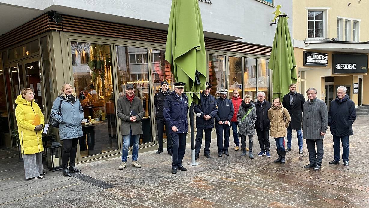 Abschließend wurden der kleinen Königsplatz und der Marienplatz aufgesucht. Thema der Anlieger war hier die eingeschränkten Stellmöglichkeiten für Tische und Stühle im Außenbereich auf der öffentlichen Fläche. Wegen Feuerwehrdurchfahrten und -umfahrten sowie für Feuerwehraufstellflächen für die größere Drehleiter muss nach ihrer Ansicht zu viel Fläche freigelassen werden.