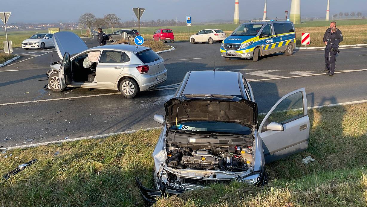 Im Einmündungsbereich der Straße Im Knick auf die Bundesstraße 64 kollidierten zwei Fahrzeuge. Dabei wurden beide Fahrer verletzt. | © Ralph Meyer