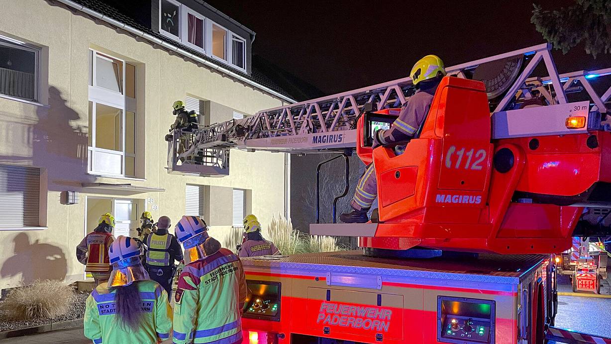 Auch eine Drehleiter kommt in der Benediktinerstraße zum Einsatz. | © Ralph Meyer