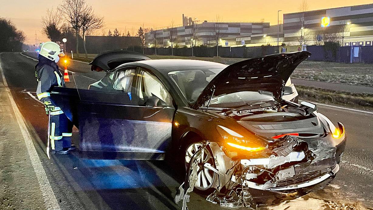 Bei einem Frontalzusammenstoß auf der Borchener Straße zwischen einem Tesla und einem Mini wurden drei Insassen verletzt. | © Ralph Meyer
