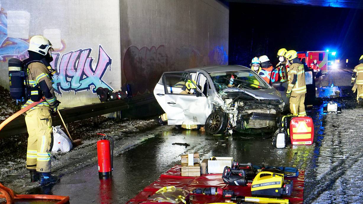 Fünf Verletzte bei schwerem Verkehrsunfall auf schneeglatter B 64