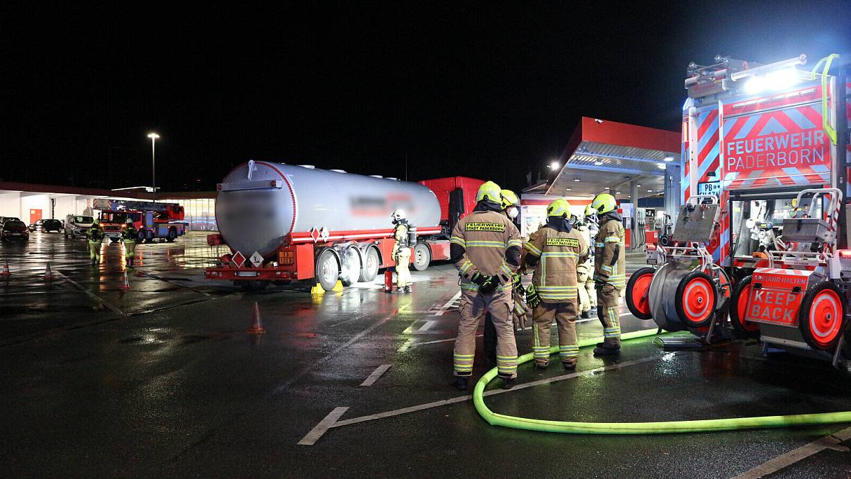 Paderborn. Einen brennenden, mit Kraftstoff gefüllten Tanklastzug hat die Paderborner Feuerwehr am Donnerstagabend gelöscht. Dem beherzten Eingreifen des Fahrers dürfte es zu verdanken sein, dass dabei Schlimmeres verhindert wurde. Denn die Flammen drohten, auf die angrenzende Tankstelle überzugreifen.