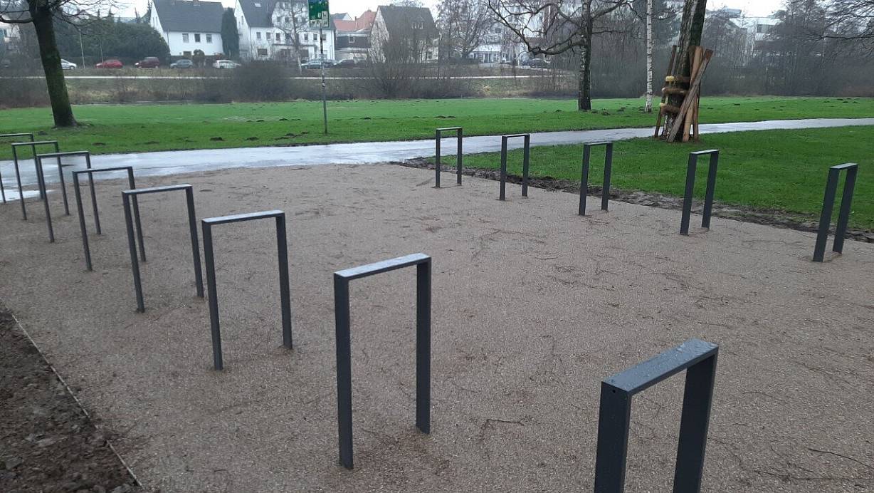 So gut wie fertig ist bereits der Parkplatz für Fahrräder mit seinen 18 Stahlbügeln. | © Hans-Hermann Igges