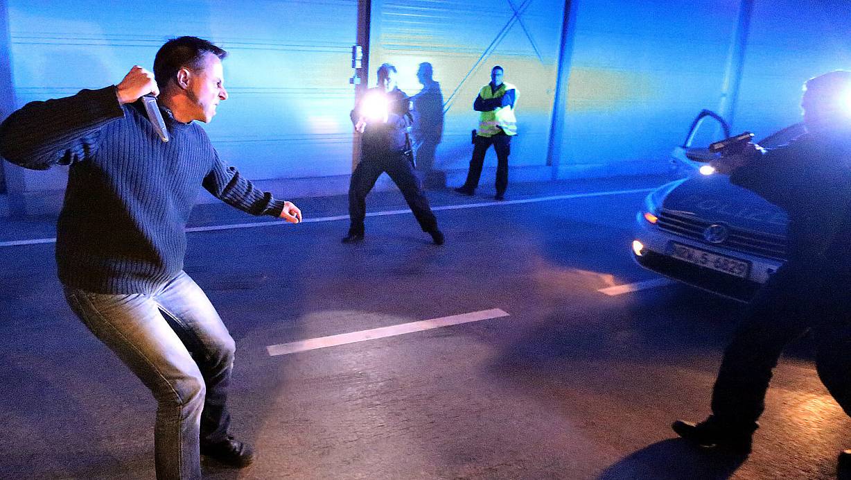 Polizisten simulieren regelmäßig Situationen, in den sie angegriffen werden. So wie hier im regionalen Trainingszentrum der Polizei in Schloß Holte-Stukenbrock. | © Archivfoto: Wolfgang Rudolf