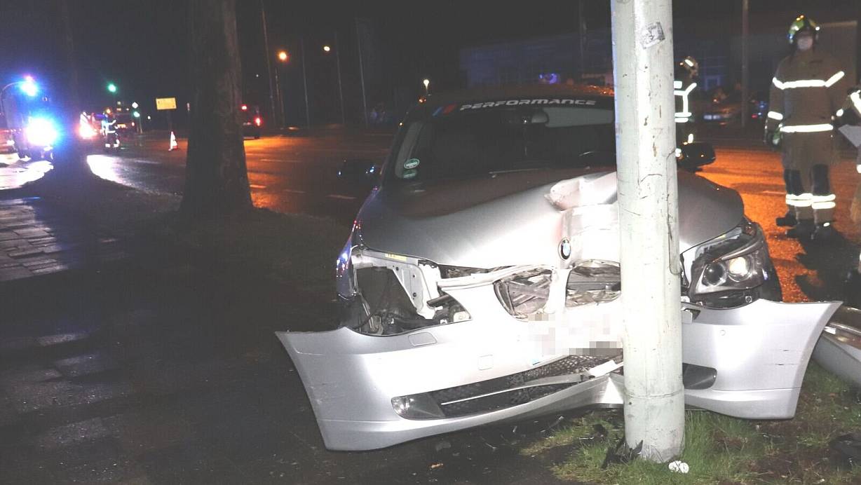 Der Fahrer verlor die Kontrolle und kam nach rechts von der Straße ab. Kurz vor der Einmündung Lothringer Weg prallte der BMW frontal gegen eine Straßenlaterne und blieb mit Totalschaden liegen. Den Gesamtschaden schätzt die Polizei auf etwa 12.000 Euro. Der Fahrer und sein Beifahrer blieben unverletzt.