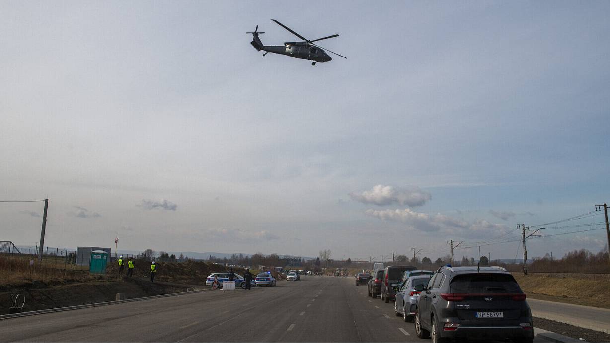 An der Grenze zwischen Polen und der Ukraine bildeten sich lange Schlangen aus Autos Pkw und Bussen. | © picture alliance / abaca