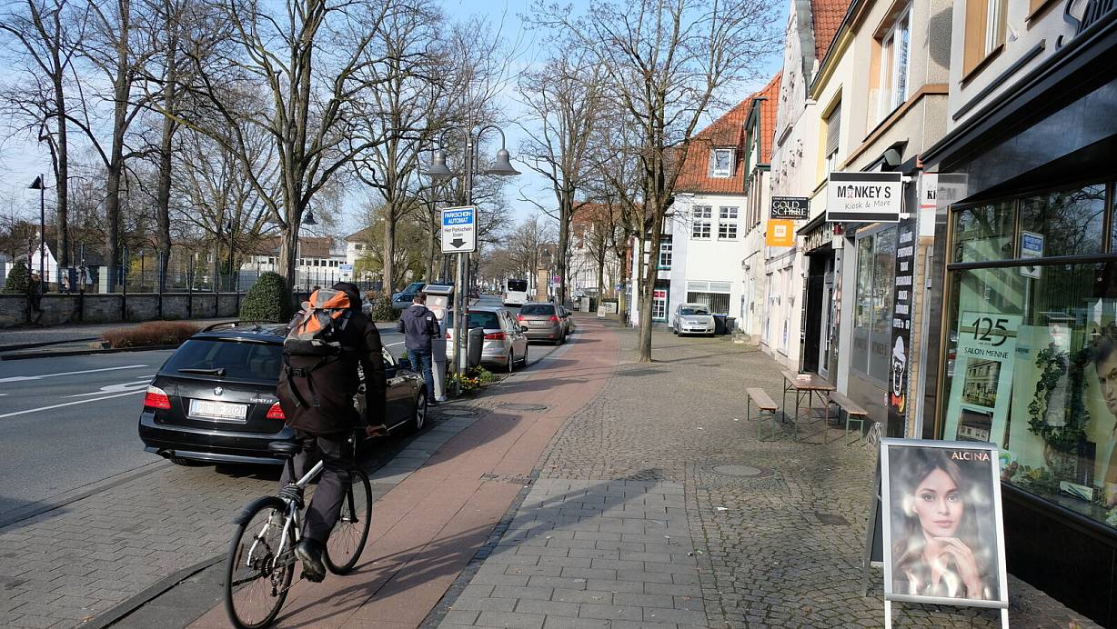 Bürgersteig, Radweg, Parkstreifen: Nicht immer sind im Neuhäuser Kern alle Flächen in öffentlicher Hand. Die heterogenen Besitzverhältnisse machen Eingriffe schwierig. | © Hans-Hermann Igges