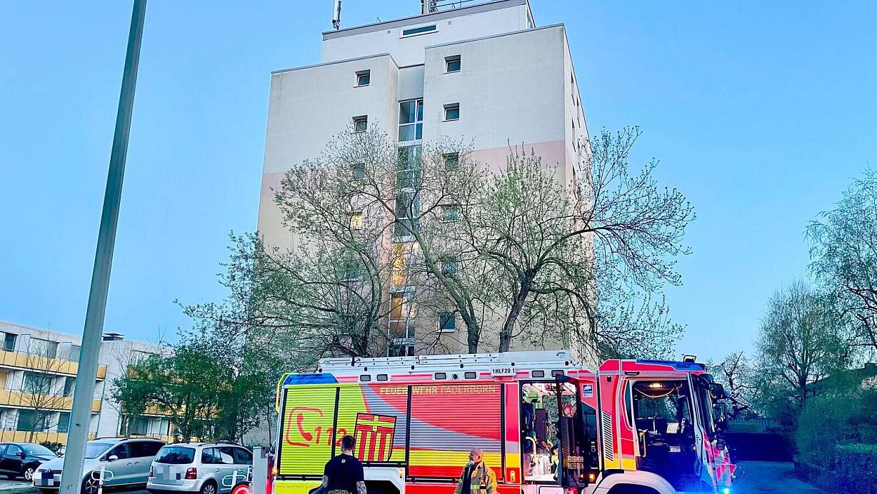 Etwa 20 Feuerwehrleute sind am Abend zu dem Hochhaus an der Paderborner Leuschnerstraße ausgerückt. | © Ralph Meyer