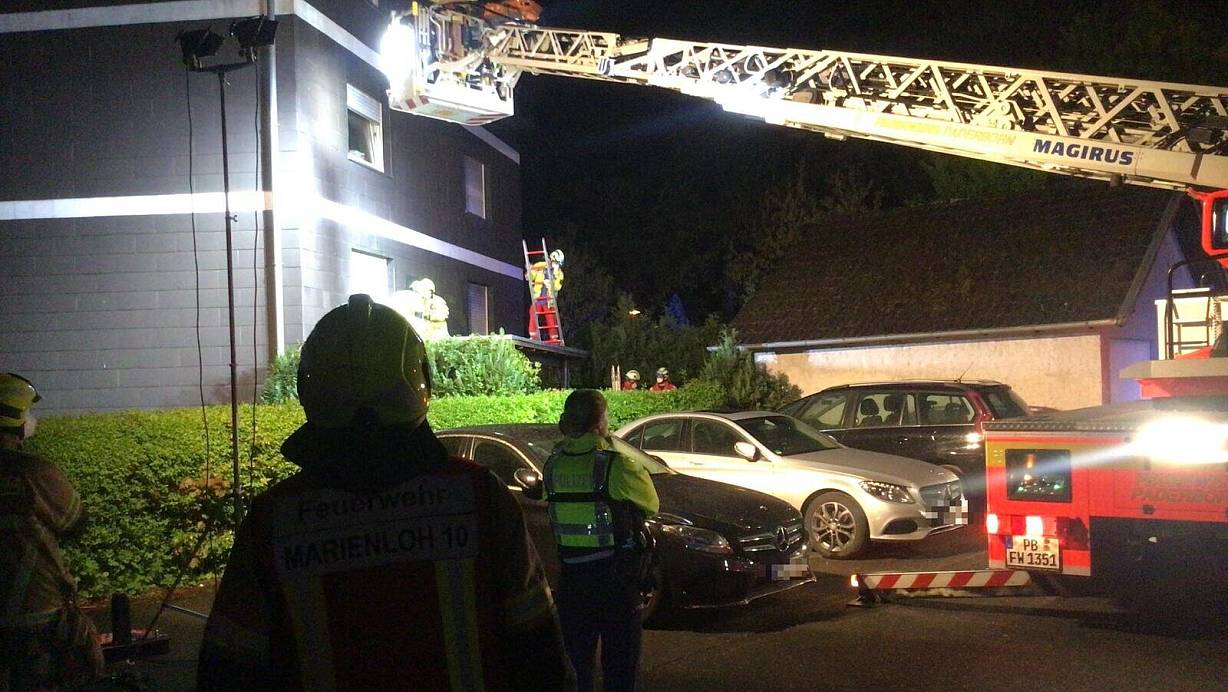 Die mitalarmierten Kräfte aus Marienloh leuchteten die Einsatzstelle aus und kontrollierten im weiteren Verlauf mit der Polizei die Wohnung im dritten Obergeschoss. Die Person stürzte aus ungeklärter Ursache aus dem Fenster und verletzte sich dabei vermutlich im Bereich des Rückens.