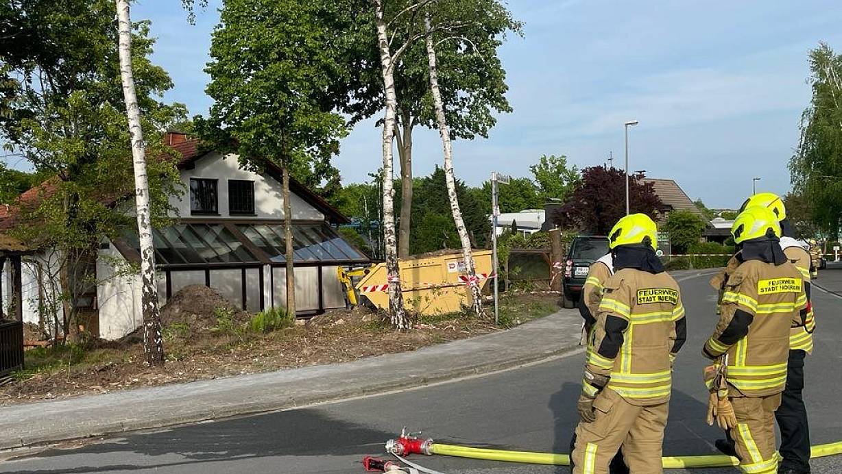 Bagger trifft Gasleitung an der Schulze-Delitzsch-Straße in Paderborn