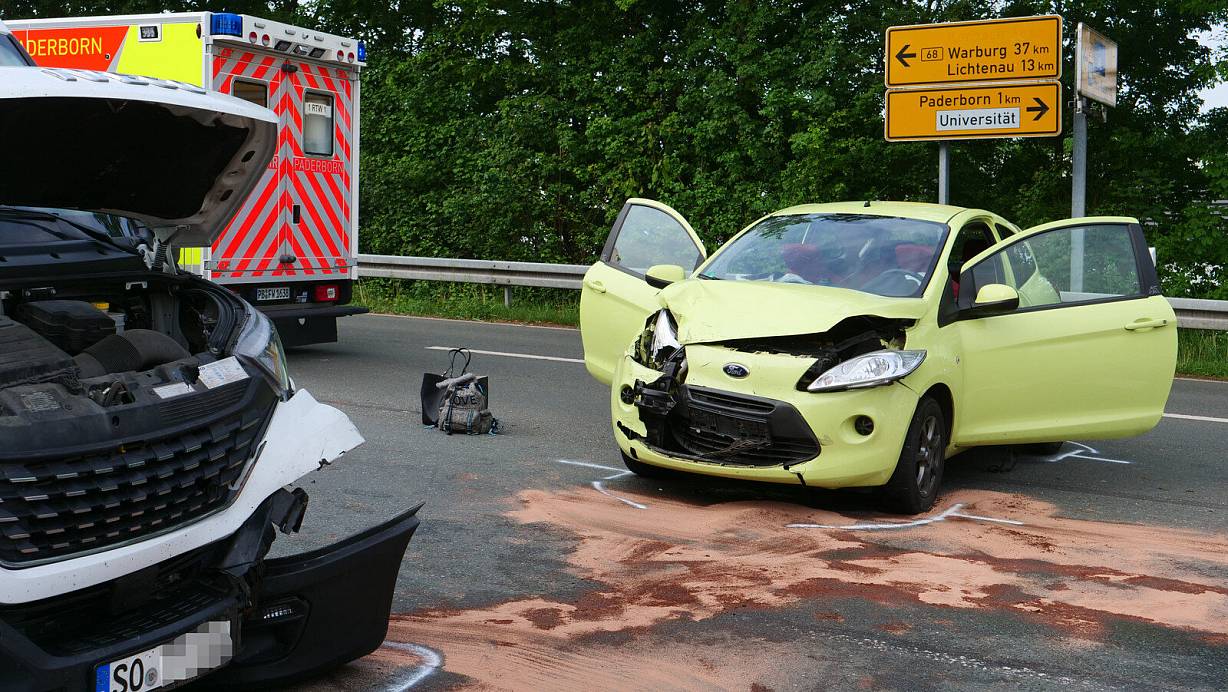 Als Linksabbiegerin von der Warburger Straße auf die B 64 übersah die Fahrerin eines mit vier Frauen besetzten Ford Fiesta einen Iveco Daily-Kastenwagen. | © Ralph Meyer